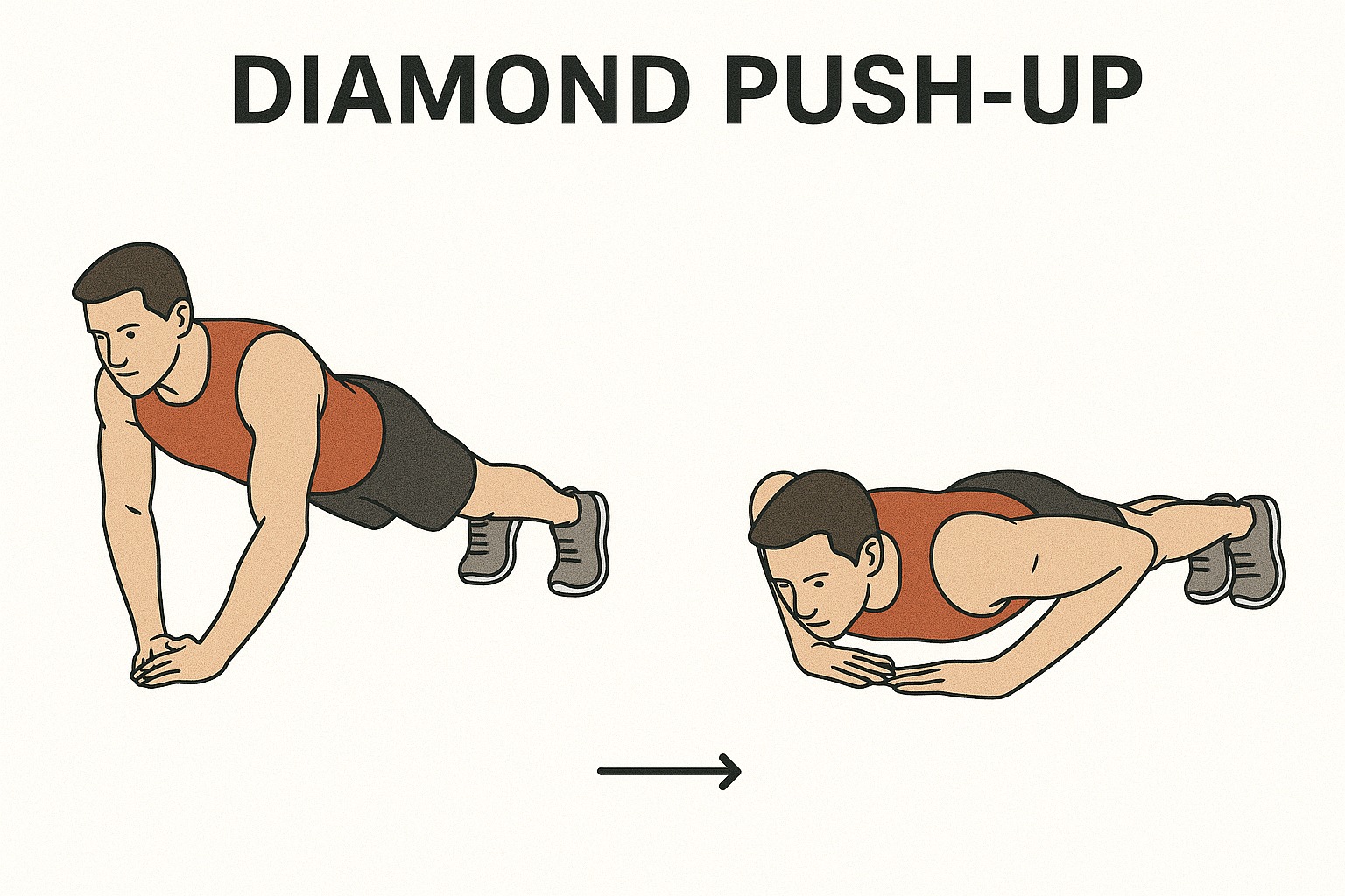 窄距伏地挺身(又稱鑽石伏地挺身)是徒手胸肌訓練中強度較高的動作之一,主要鍛鍊胸大肌內側與肱三頭肌,同時對核心穩定性要求高。以下是完整詳解: